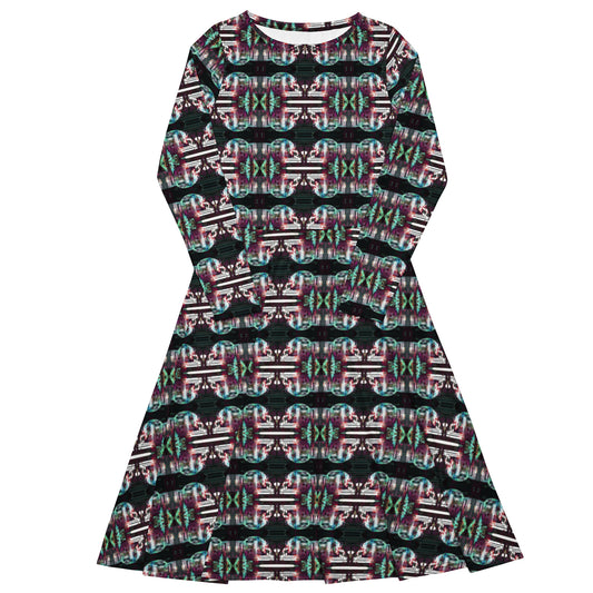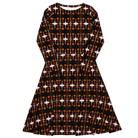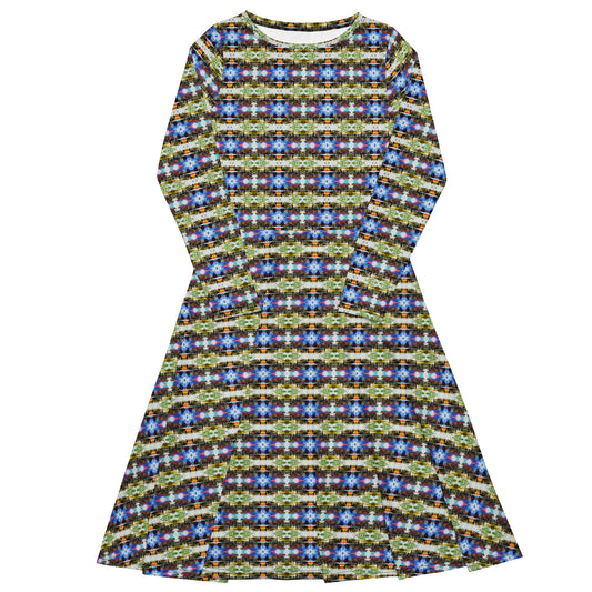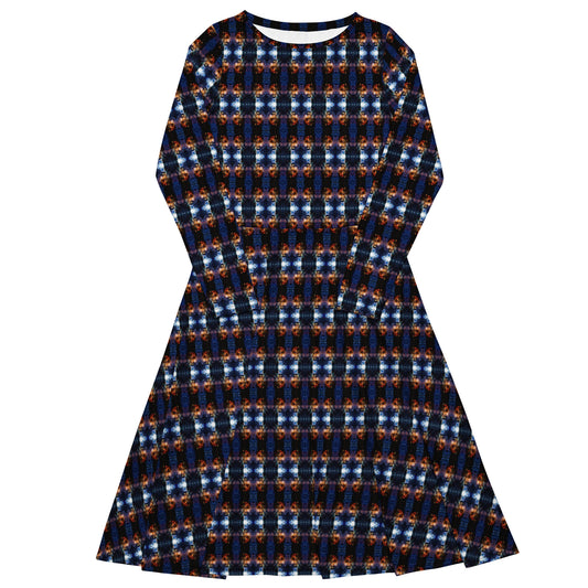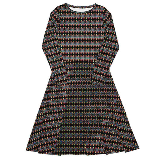 All-over print long sleeve midi dress. MÁSCARA 6.