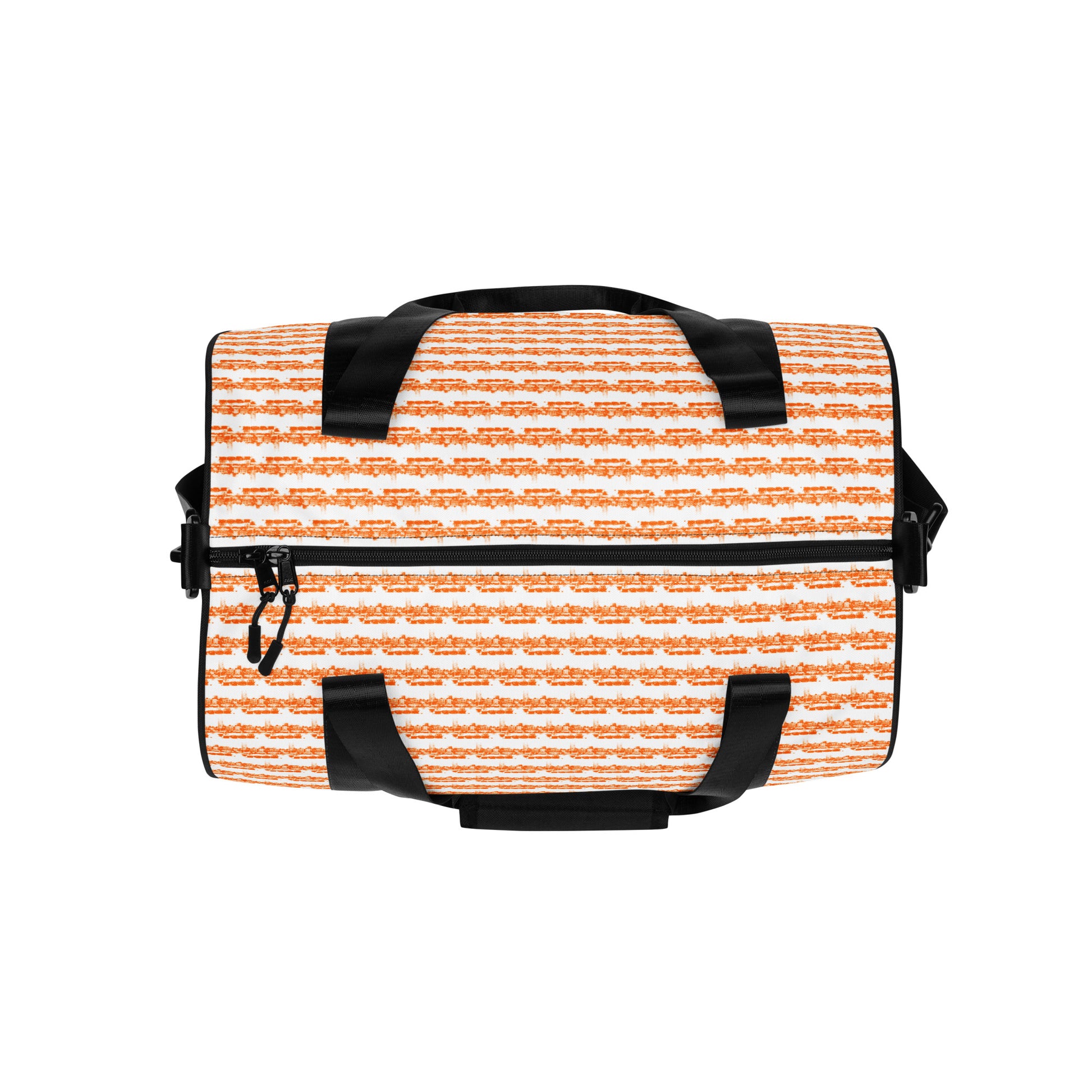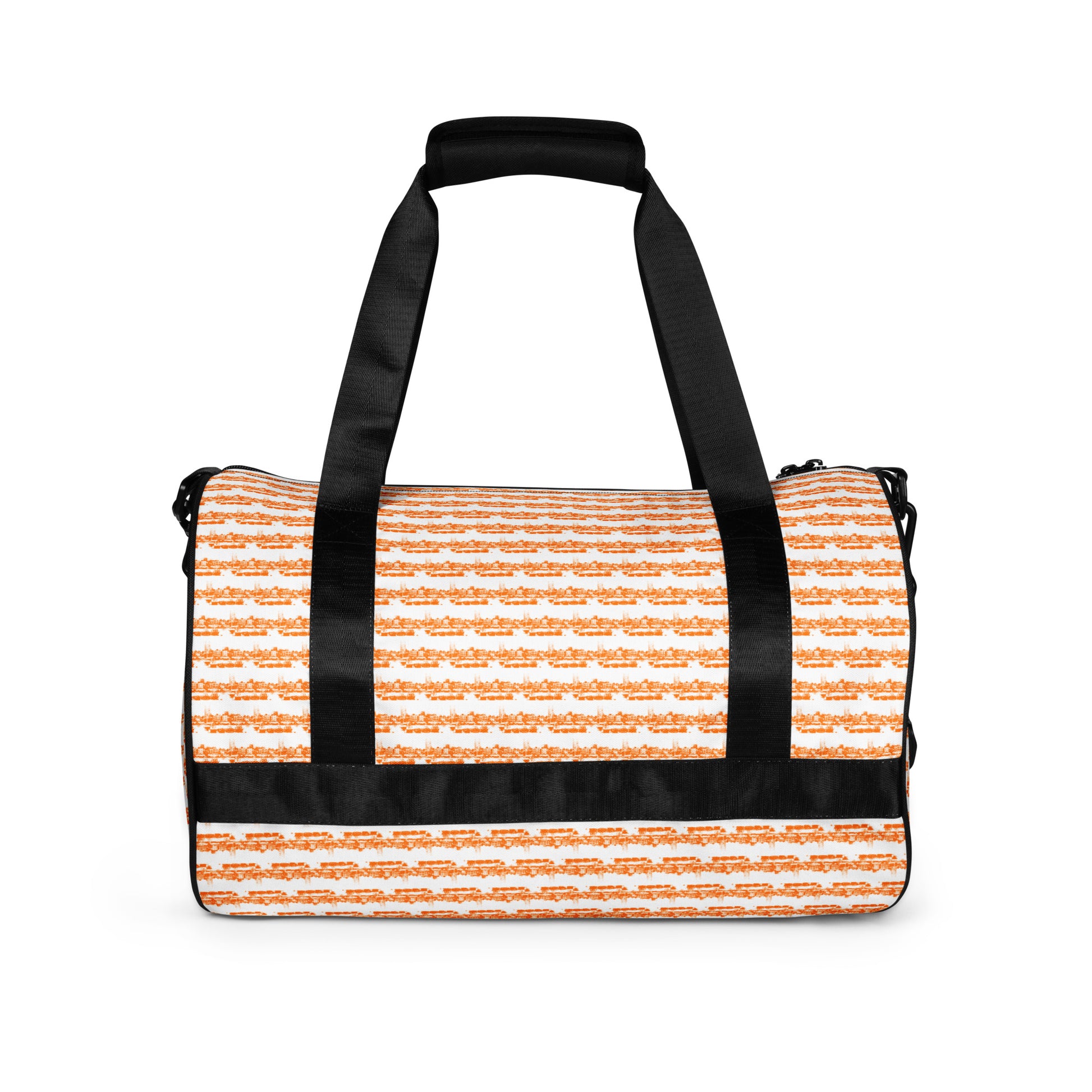 Ready to get your fitness on? Add some punch to pumping iron with this all-over print gym bag. Made from 100% polyester and sturdy, water-resistant fabric, this bag is fun meets function. And it’s got pockets!