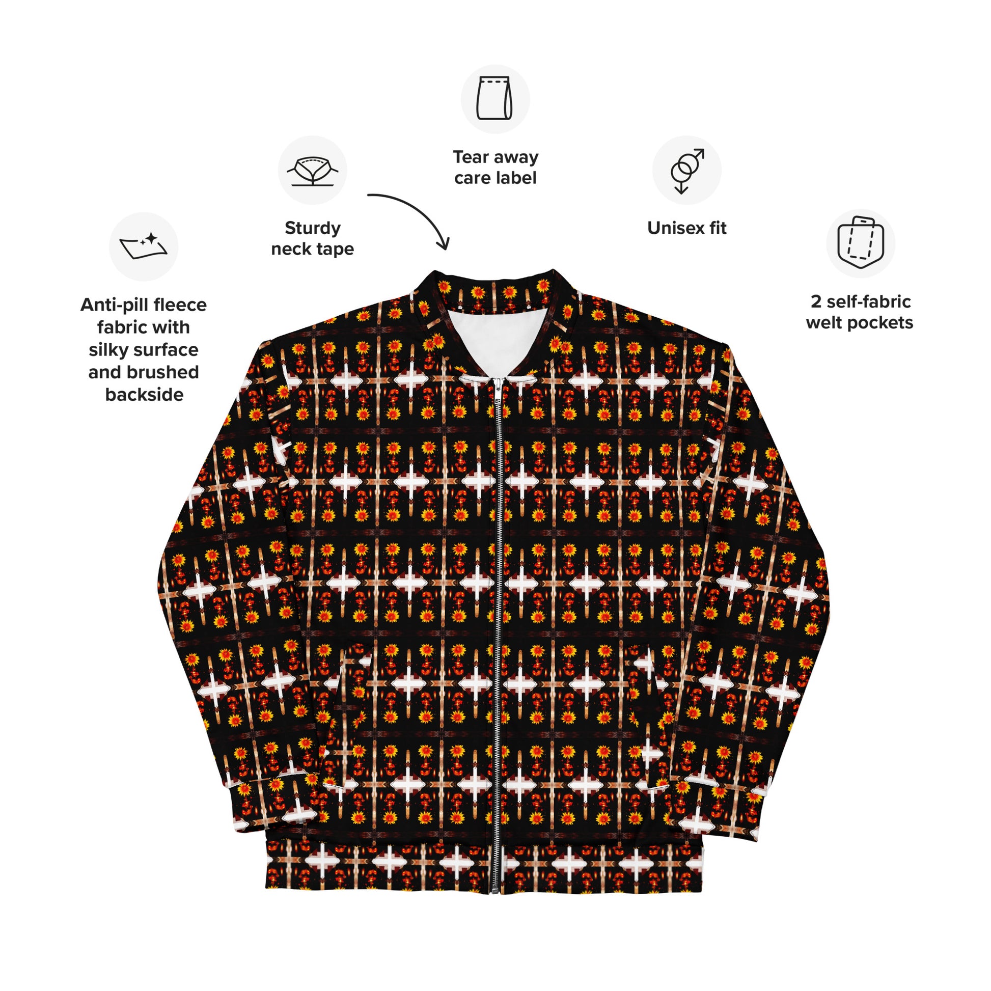 Add a little zing to your wardrobe with this vibrant All-Over Print Bomber Jacket. Wear it on a basic t-shirt, or layer it on top of a warm hoodie—it’ll look great either way. With a brushed fleece inside, and a relaxed unisex fit, this Bomber Jacket is just the stuff of the dreams, so be quick to grab yourself one!