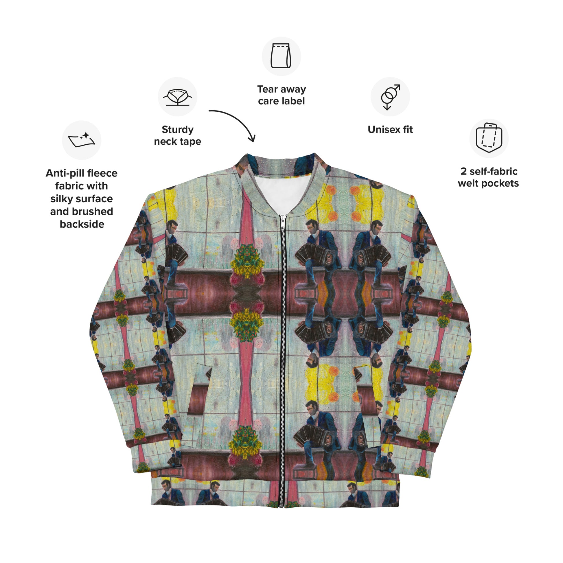 Add a little zing to your wardrobe with this vibrant All-Over Print Bomber Jacket. Wear it on a basic t-shirt, or layer it on top of a warm hoodie—it'll look great either way. With a brushed fleece inside, and a relaxed unisex fit, this Bomber Jacket is just the stuff of the dreams, so be quick to grab yourself one!