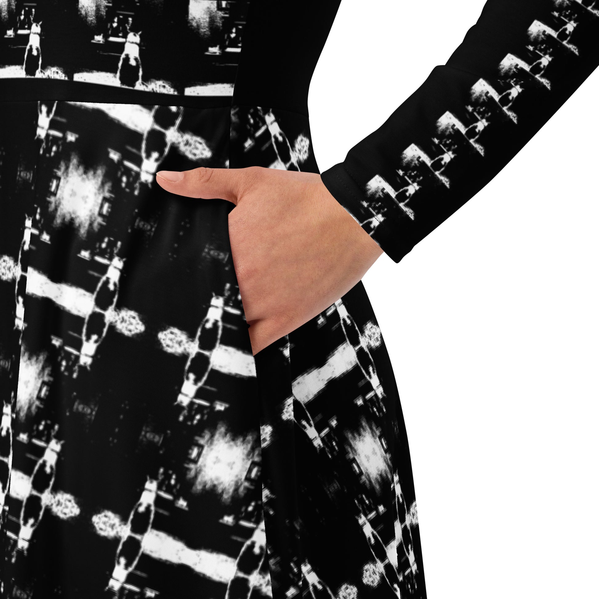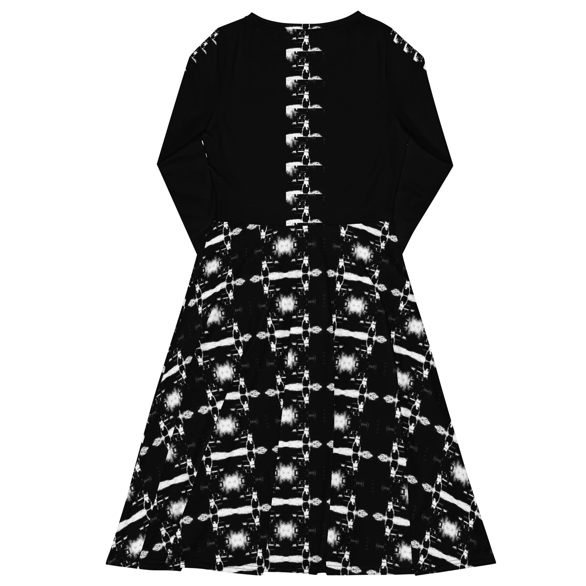 All-over print long sleeve midi dress. B & N 1.