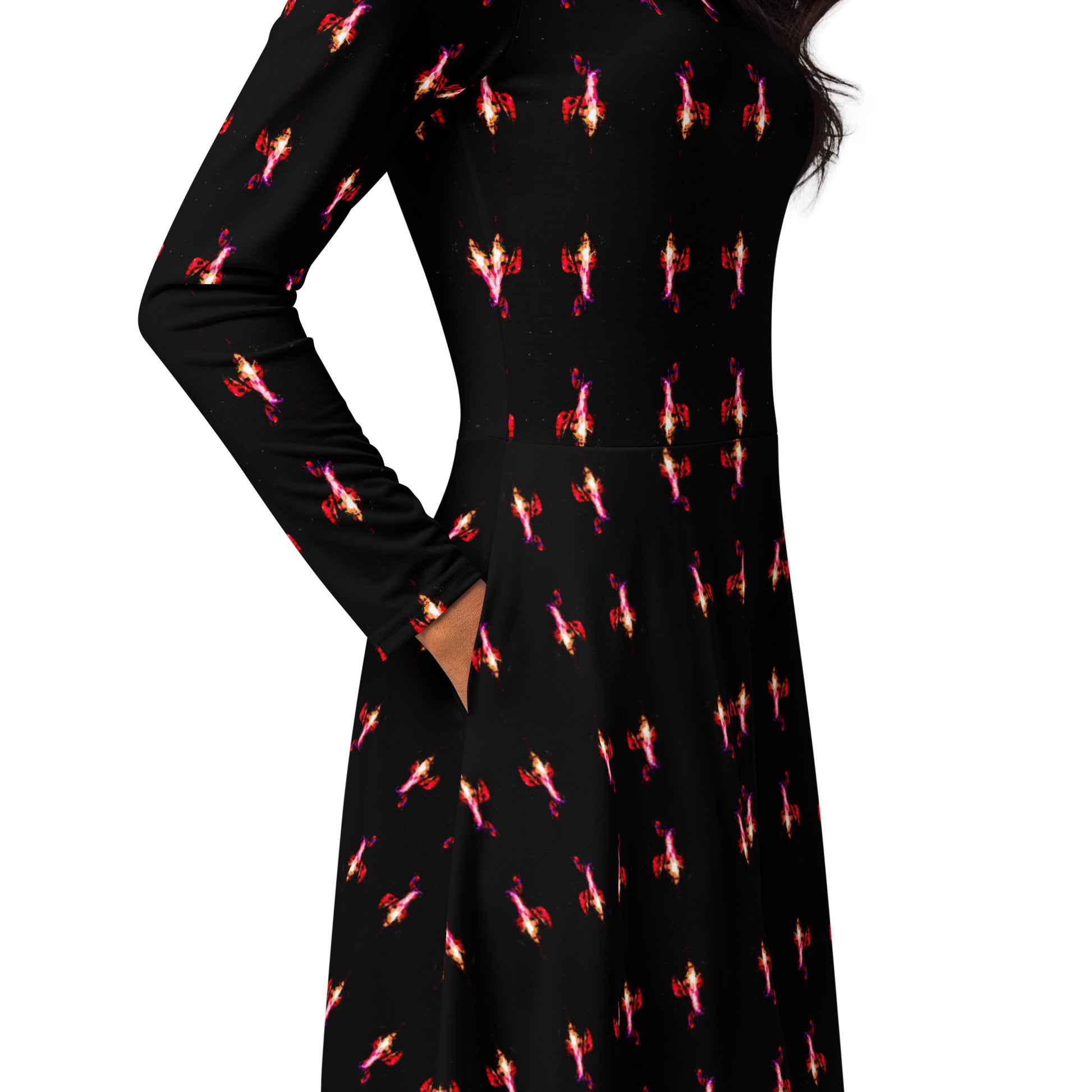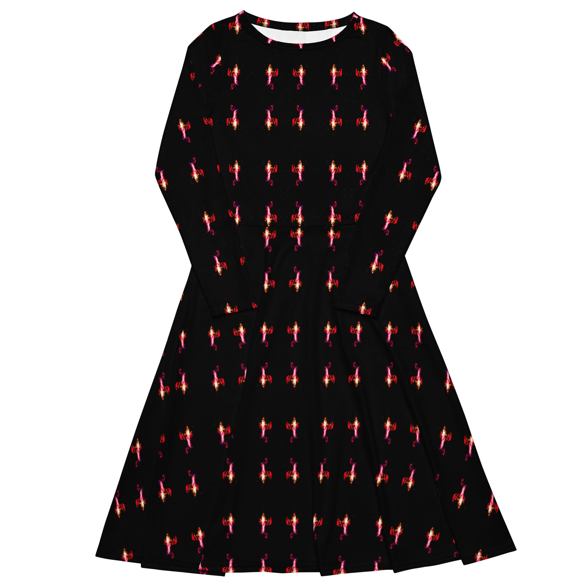 All-over print long sleeve midi dress FGO ART