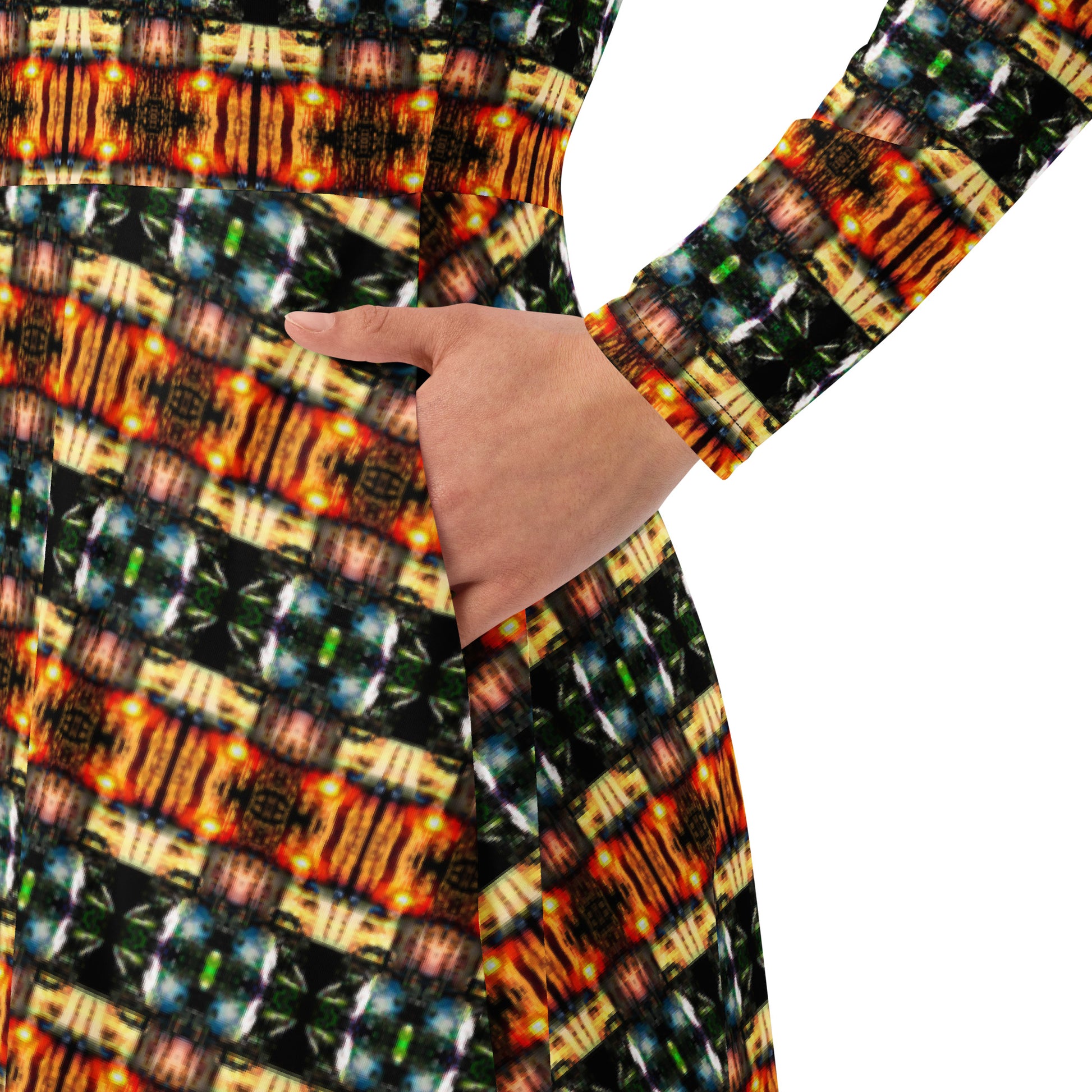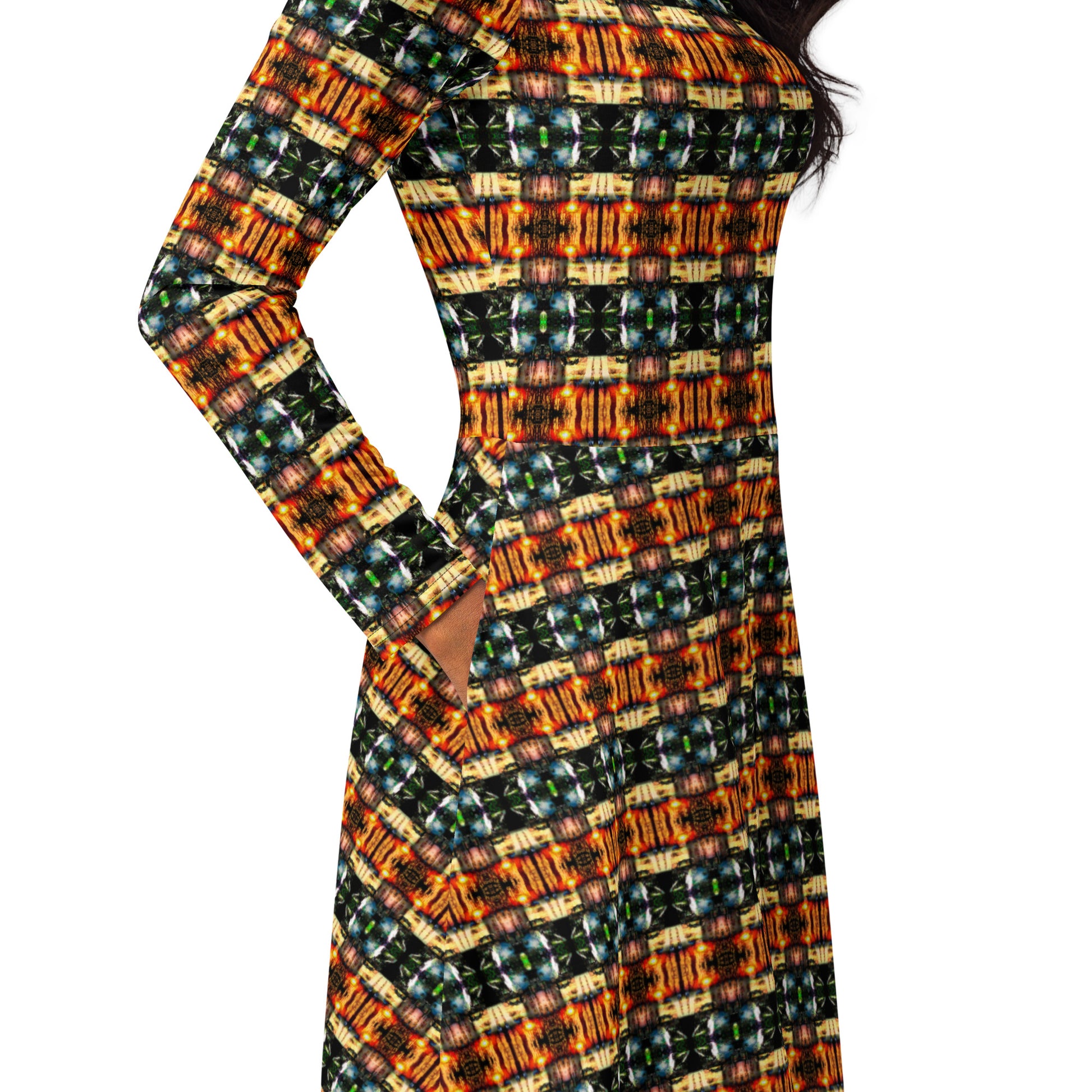 All-over print long sleeve midi dress. LAS CAPAS 10.