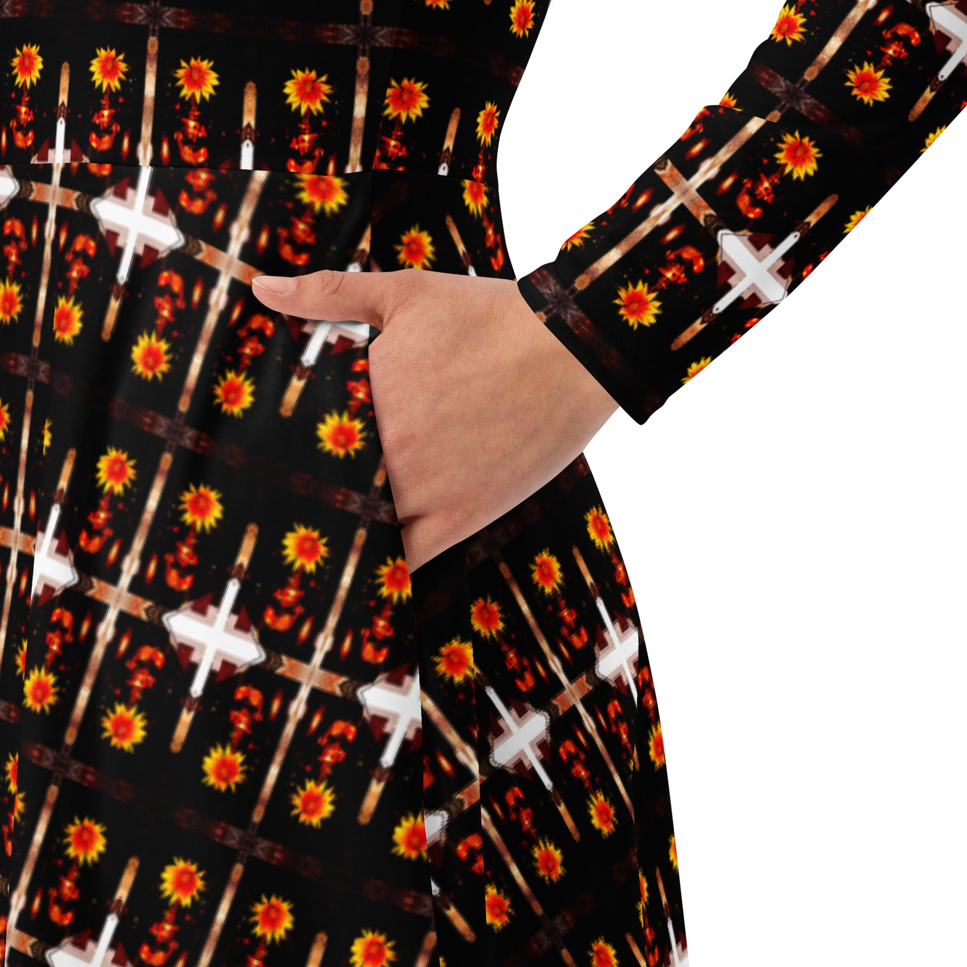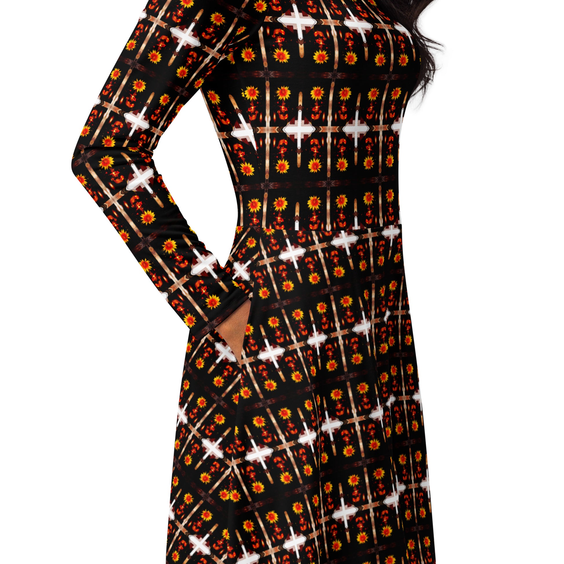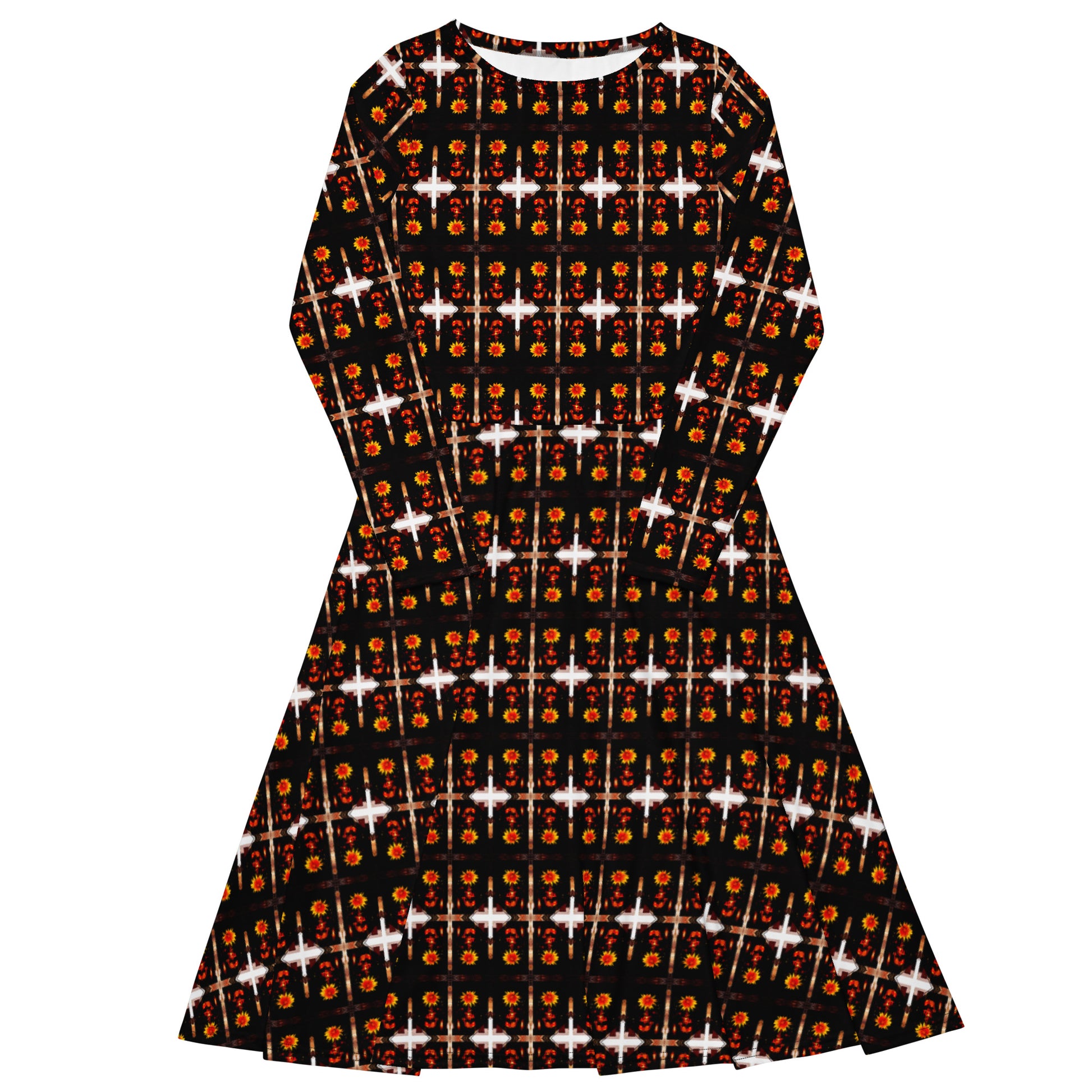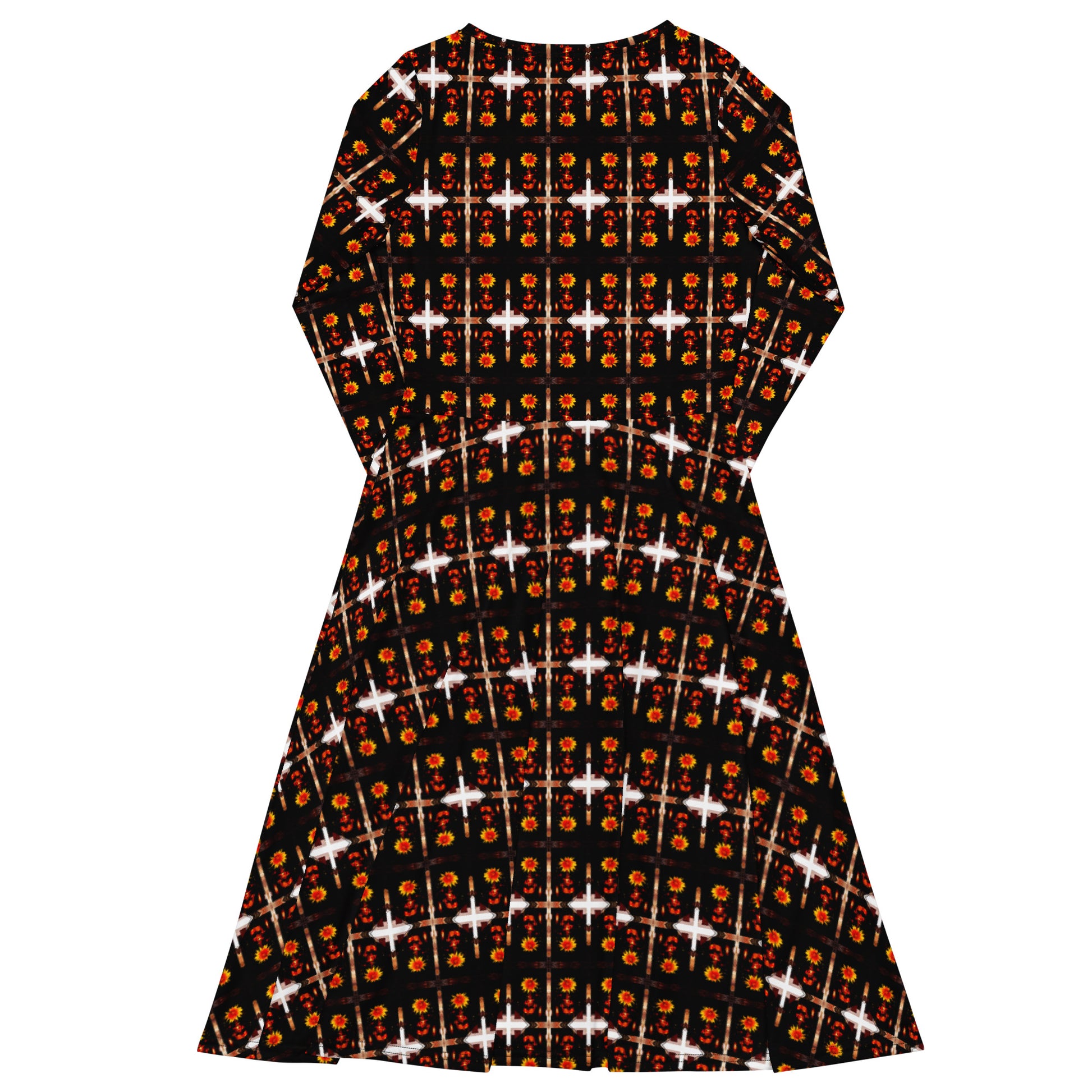 All-over print long sleeve midi dress. LAS CAPAS 7.