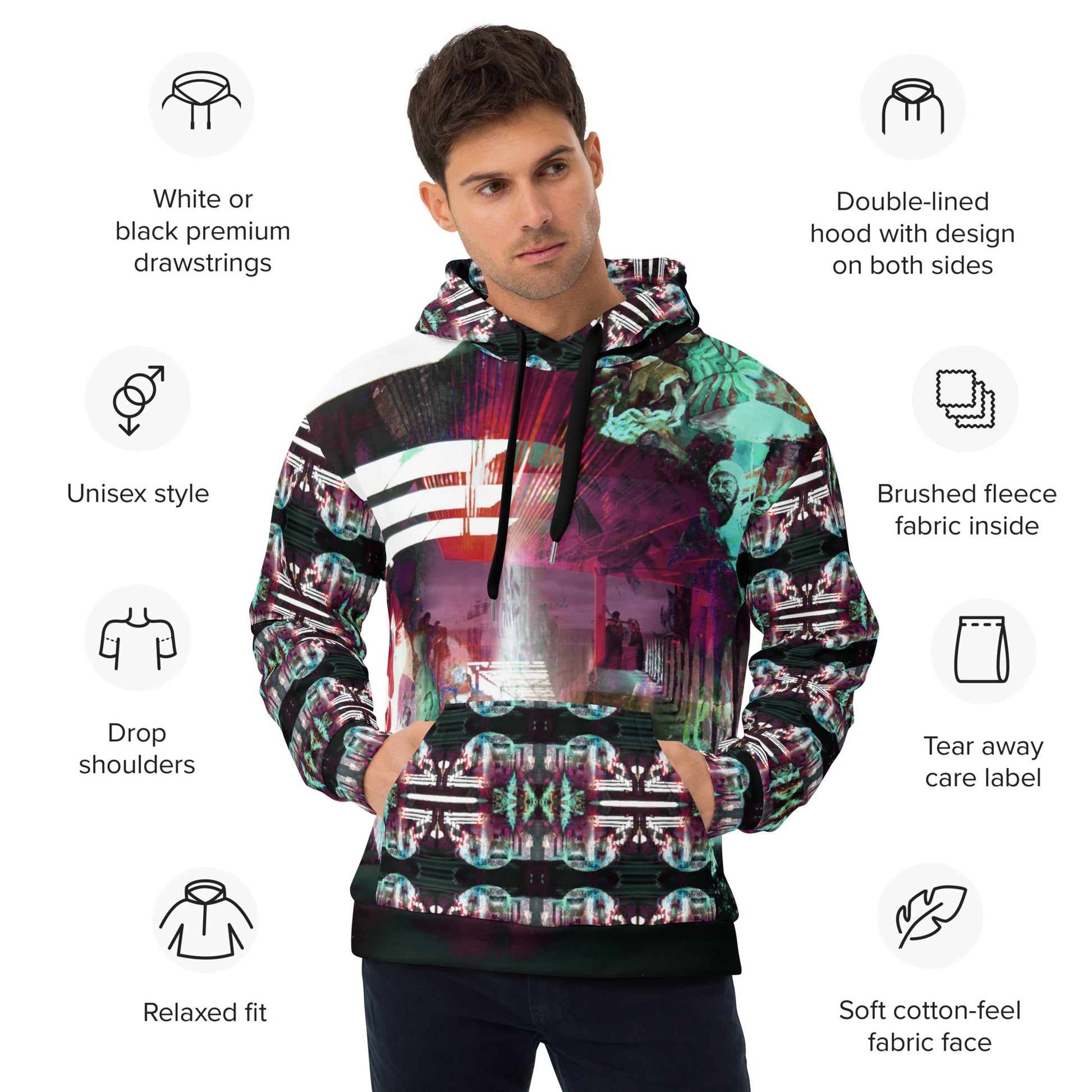 • Double-lined hood with design on both sides