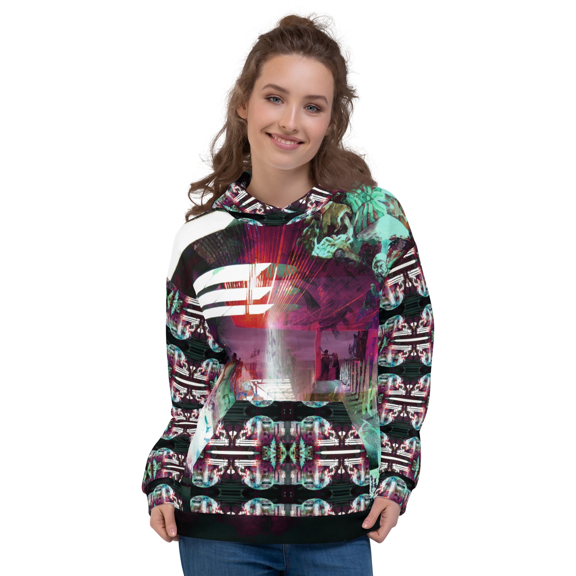 This comfy unisex hoodie has a soft outside with a vibrant print and an even softer brushed fleece inside. The hoodie has a relaxed fit, and it’s perfect for wrapping yourself into on a chilly evening.