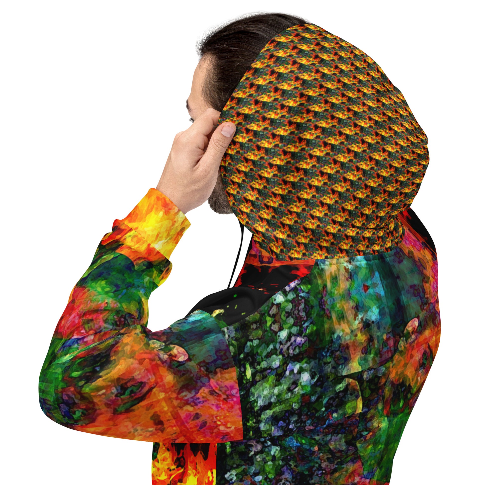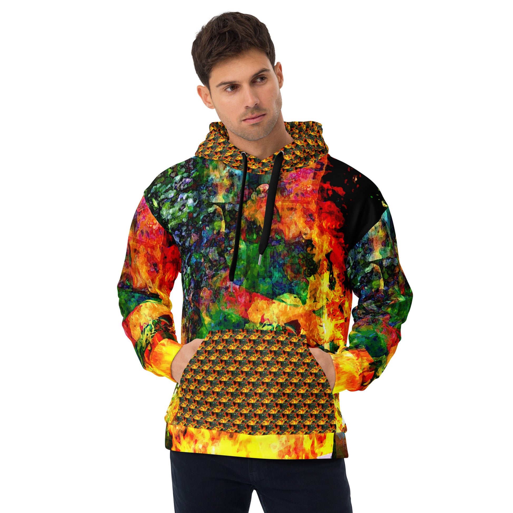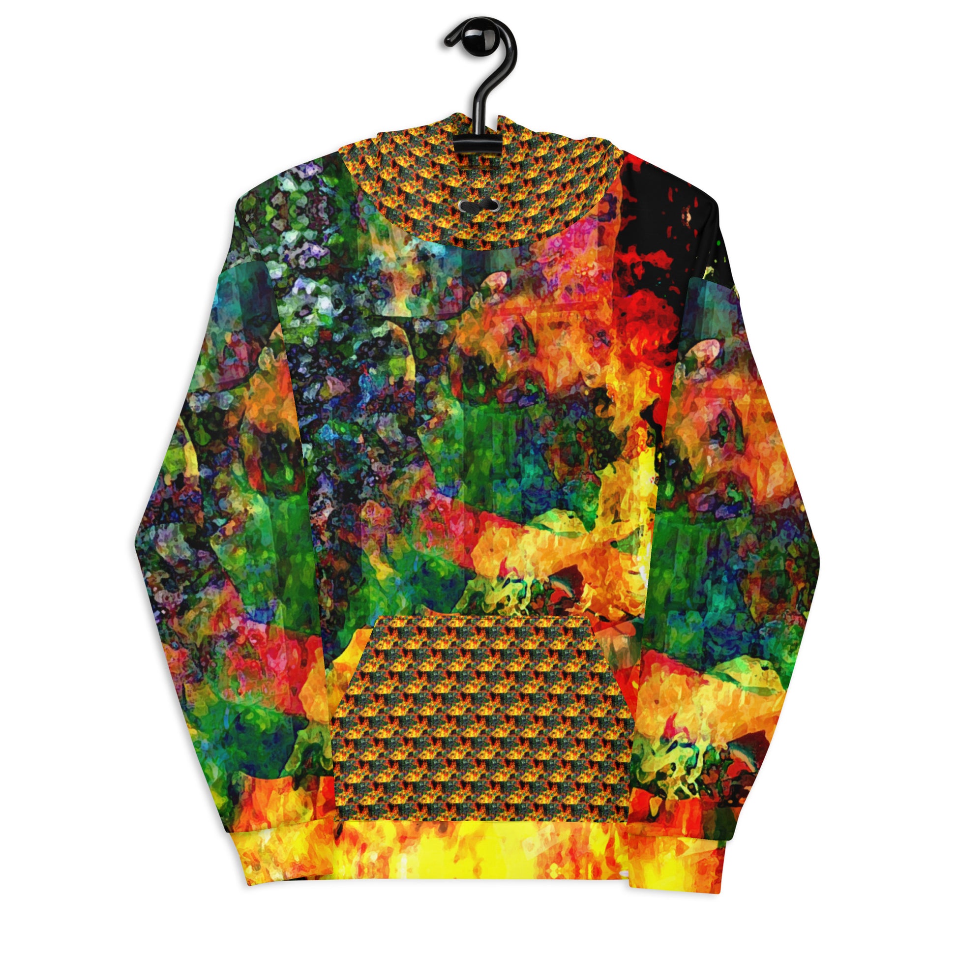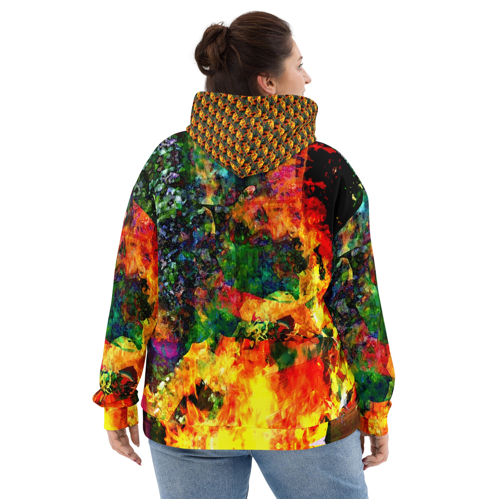 This comfy unisex hoodie has a soft outside with a vibrant print and an even softer brushed fleece inside. The hoodie has a relaxed fit, and it’s perfect for wrapping yourself into on a chilly evening.